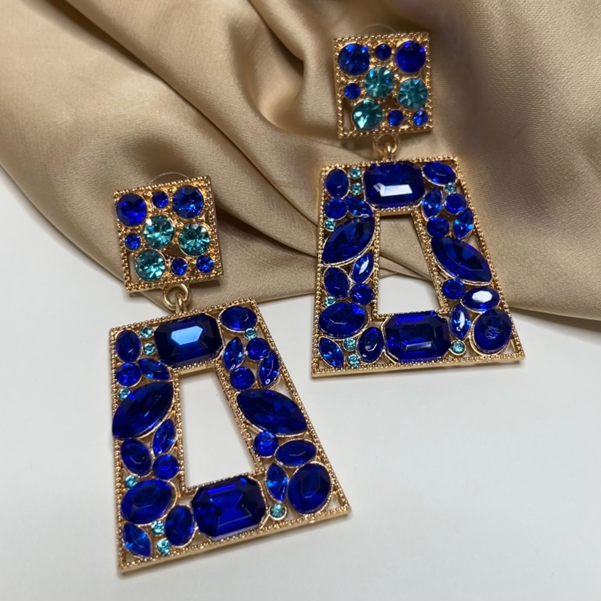 Looking for an accessory to take your outfit to the next level? These stunning Blue Encrusted Rhinestone Pendant Earrings are perfect for any formal occasion or night out. With their bold, statement-making design and eye-catching blue rhinestones, these earrings are sure to turn heads. The intricate detailing on the pendant adds a touch of elegance, while the dainty rhinestone accents bring just the right amount of sparkle. These earrings are versatile enough to pair with any outfit, from a classic little black dress to a trendy jumpsuit. Make a statement with these beautiful earrings at your next prom, party, or special event.