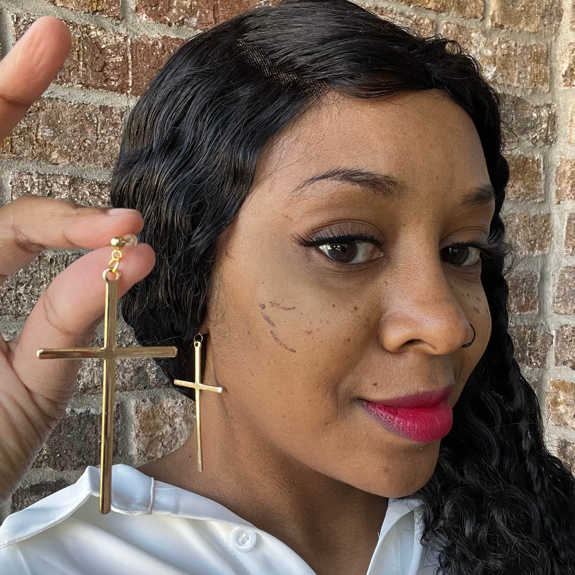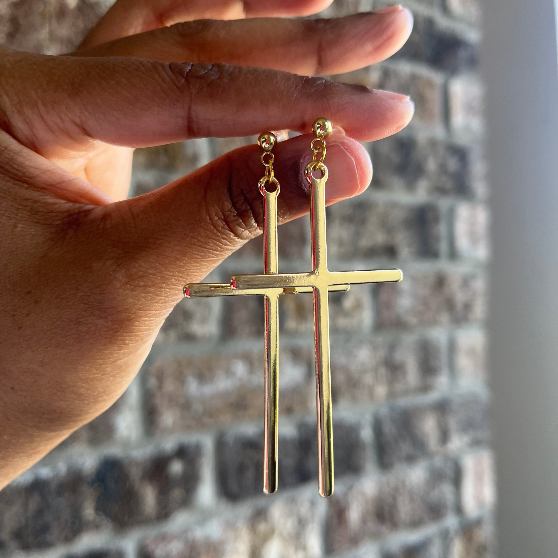 These gold cross earrings with gold stud posts are a timeless symbol of faith, strength, and elegance. Effortless and made to remind you — God goes with you everywhere.